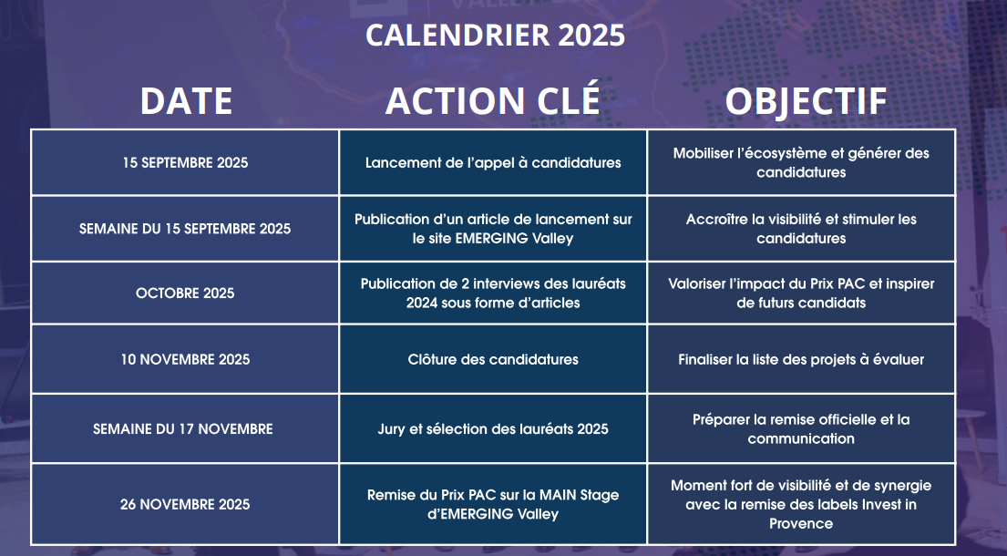 Le prix sera remis on stage au cours du Sommet de l’innovation et des startups émergentes AFRIQUE-EUROPE EMERGING Valley 2025, le 26 novembre 2025 à TheCamp - Aix-en-Provence.