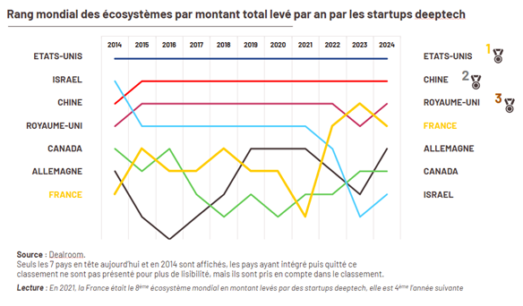 En 2025, l’observatoire deeptech montre un volume d’environ 39,7 M€ levés sur le périmètre métropolitain pour les seules sociétés deeptech, pour un ordre de grandeur d’une centaine d’entreprises actives, dans un contexte national où la France mobilise environ 3 Md€ de capital-risque deeptech par an.