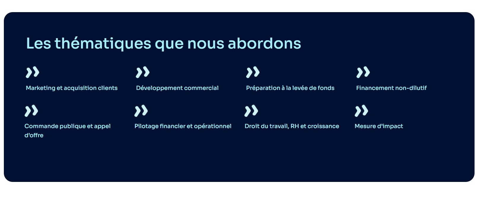 Programme de 12 mois pour les entreprises de moins de 3 ans, pour vous aider à vous structurer et booster votre développement