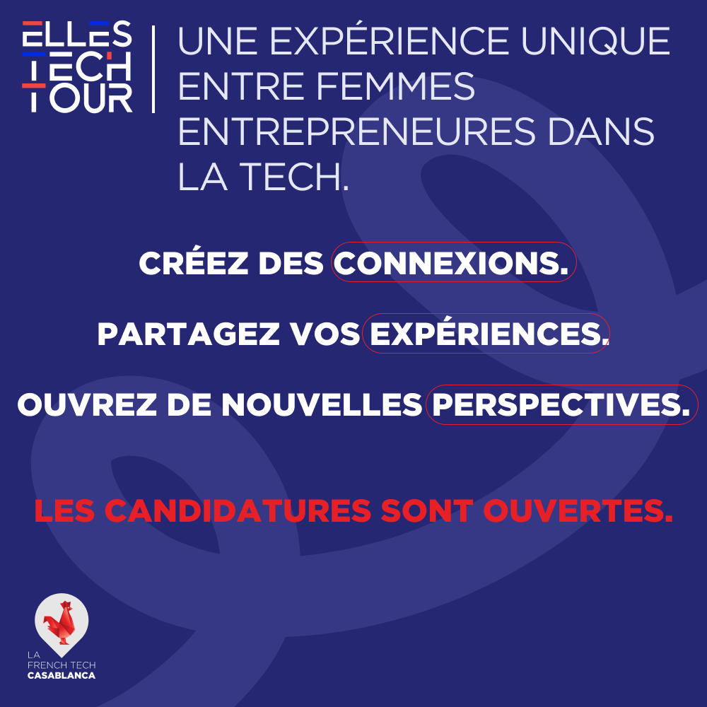 La French Tech Maroc lance la 2e édition d’Elles Tech Tour, une immersion business de 5 jours au Maroc à la découverte de trois hubs majeurs de l’écosystème : Casablanca, Tanger et Marrakech.